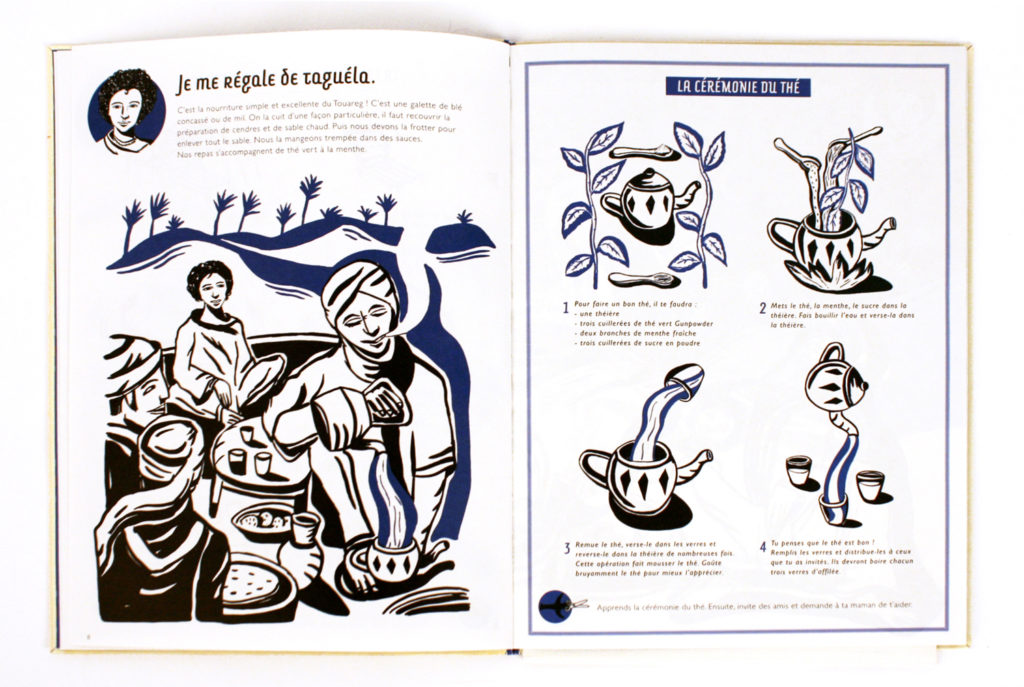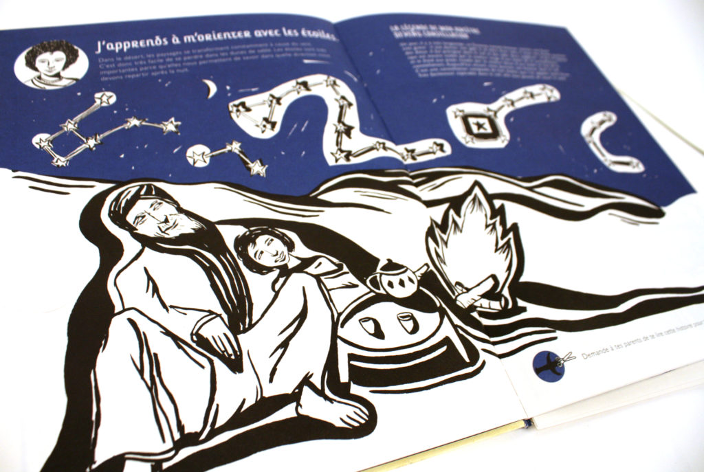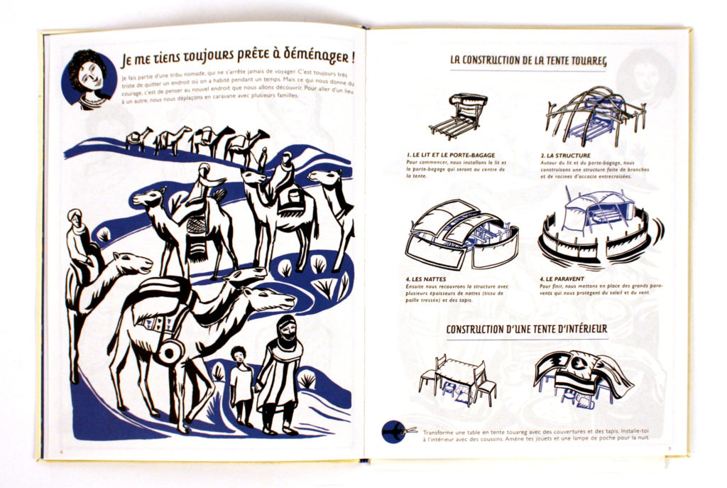 Dans Comme une touareg, laisse-toi conduire dans le désert du Sahara pour un voyage à dos de dromadaire. Apprends à construire une tente touareg, à écrire dans le sable, à te repérer grâce aux étoiles et à suivre la piste de l’oiseau moula-moula !