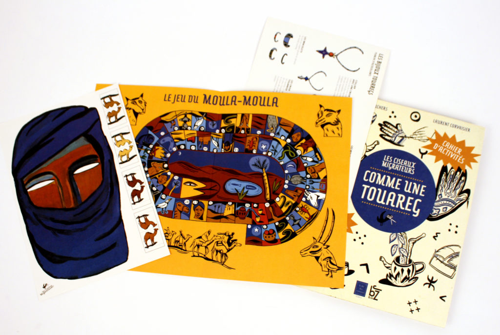 La collection “Les ciseaux migrateurs” propose aux jeunes lecteurs de se glisser dans la peau d’un enfant d’une autre culture. A travers des activités à réaliser sur le livre (jeux, coloriage, autocollants, écriture) ou à poursuivre à partir du livre (recettes de cuisine, jeu de plateau, mots à retenir, histoires à raconter…) le lecteur actif partagera son quotidien, rencontrera sa famille, découvrira sa langue et sa culture.